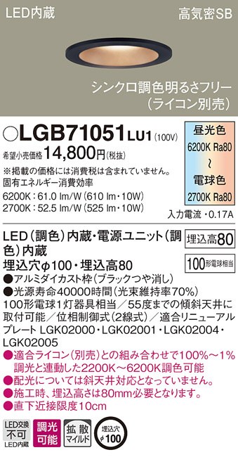 Panasonic ¥À¥¦¥ó¥é¥¤¥È LGB71051LU1