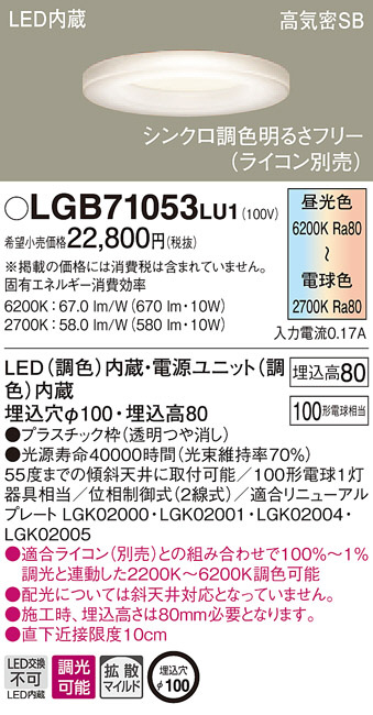 Panasonic ¥À¥¦¥ó¥é¥¤¥È LGB71053LU1