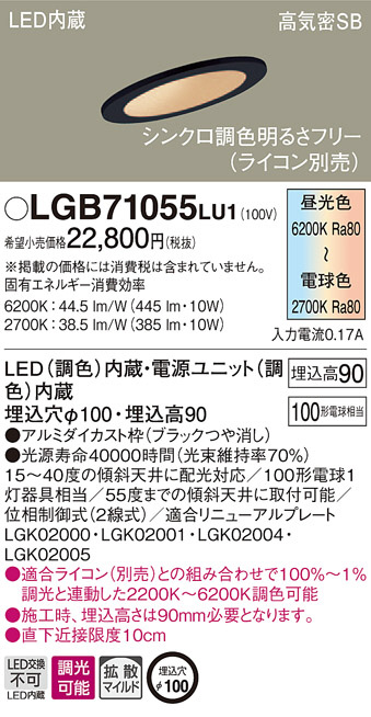 Panasonic ¥À¥¦¥ó¥é¥¤¥È LGB71055LU1