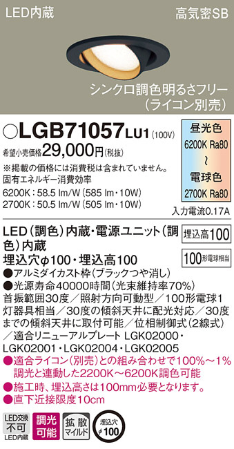 Panasonic ¥À¥¦¥ó¥é¥¤¥È LGB71057LU1