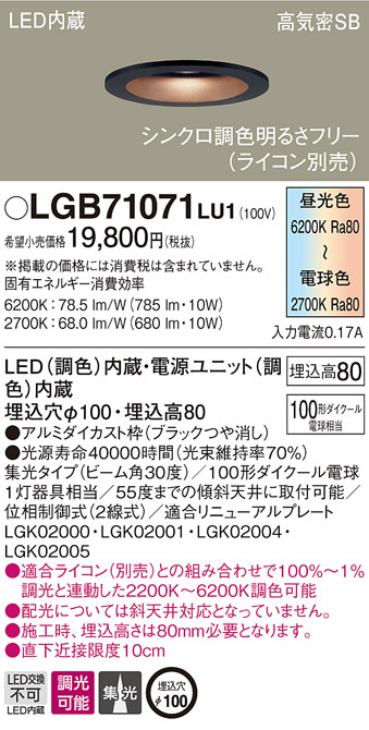 Panasonic ¥À¥¦¥ó¥é¥¤¥È LGB71071LU1