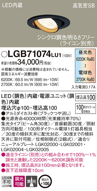 Panasonic ¥À¥¦¥ó¥é¥¤¥È LGB71074LU1