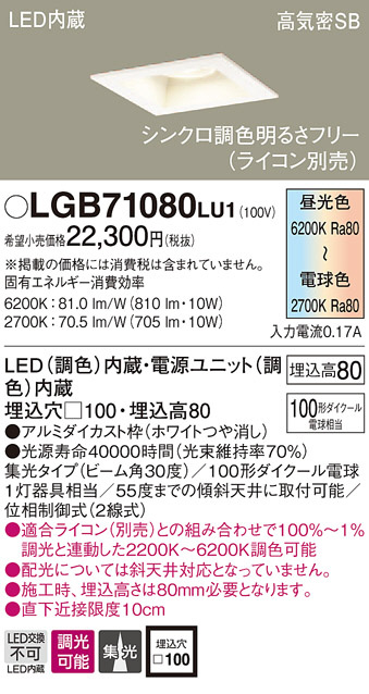 Panasonic ¥À¥¦¥ó¥é¥¤¥È LGB71080LU1