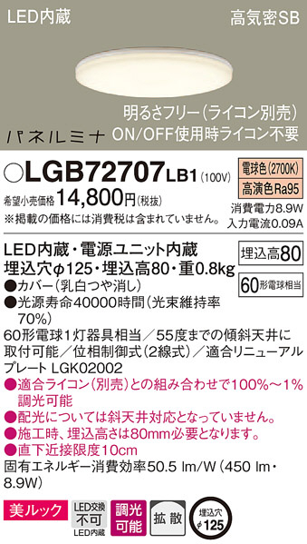 Panasonic ¥À¥¦¥ó¥é¥¤¥È LGB72707LB1