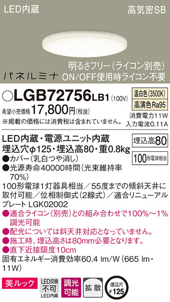 Panasonic ¥À¥¦¥ó¥é¥¤¥È LGB72756LB1