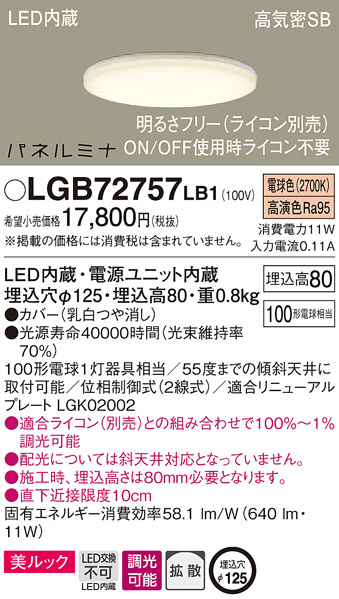 Panasonic ¥À¥¦¥ó¥é¥¤¥È LGB72757LB1