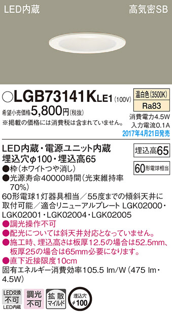 Panasonic LED ¥À¥¦¥ó¥é¥¤¥È LGB73141KLE1