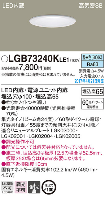 Panasonic LED ¥À¥¦¥ó¥é¥¤¥È LGB73240KLE1