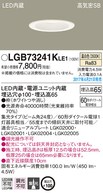 Panasonic LED ¥À¥¦¥ó¥é¥¤¥È LGB73241KLE1