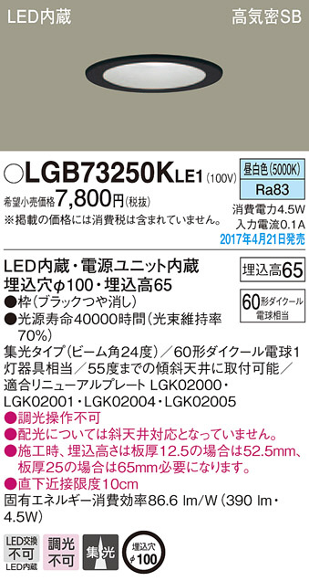 Panasonic LED ¥À¥¦¥ó¥é¥¤¥È LGB73250KLE1