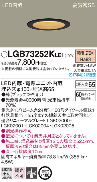 Panasonic LED ¥À¥¦¥ó¥é¥¤¥È LGB73252KLE1
