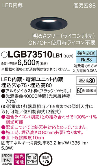 Panasonic ¥À¥¦¥ó¥é¥¤¥È LGB73510LB1