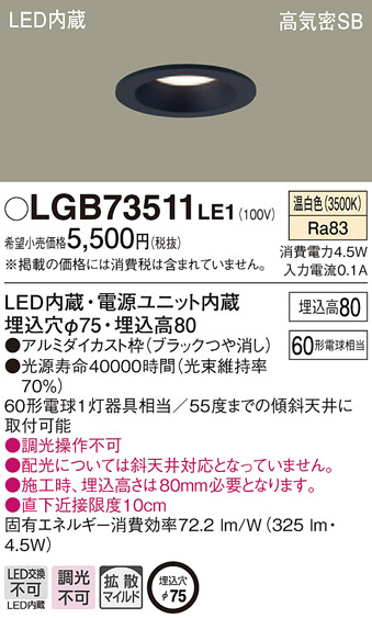 Panasonic ¥À¥¦¥ó¥é¥¤¥È LGB73511LE1