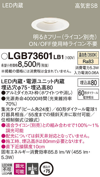 Panasonic ¥À¥¦¥ó¥é¥¤¥È LGB73601LB1