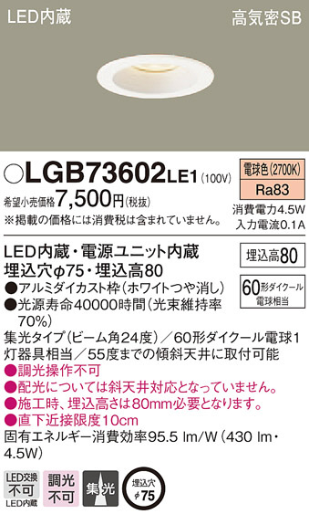 Panasonic ¥À¥¦¥ó¥é¥¤¥È LGB73602LE1