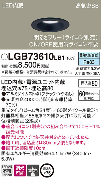 Panasonic ¥À¥¦¥ó¥é¥¤¥È LGB73610LB1