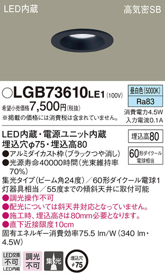Panasonic ¥À¥¦¥ó¥é¥¤¥È LGB73610LE1