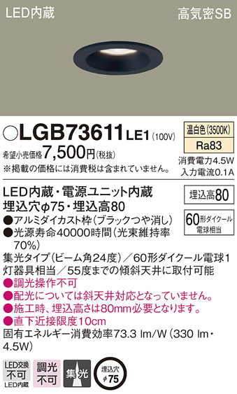 Panasonic ¥À¥¦¥ó¥é¥¤¥È LGB73611LE1