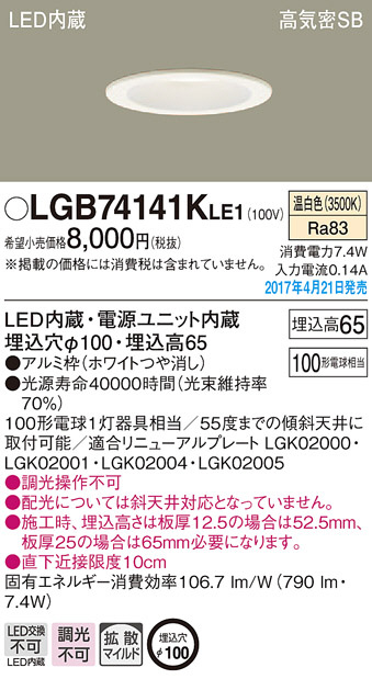 Panasonic LED ¥À¥¦¥ó¥é¥¤¥È LGB74141KLE1
