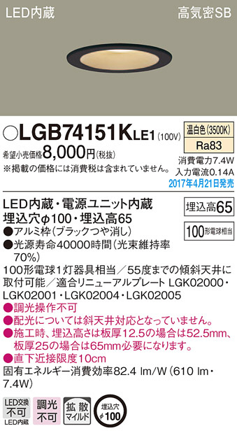 Panasonic LED ¥À¥¦¥ó¥é¥¤¥È LGB74151KLE1