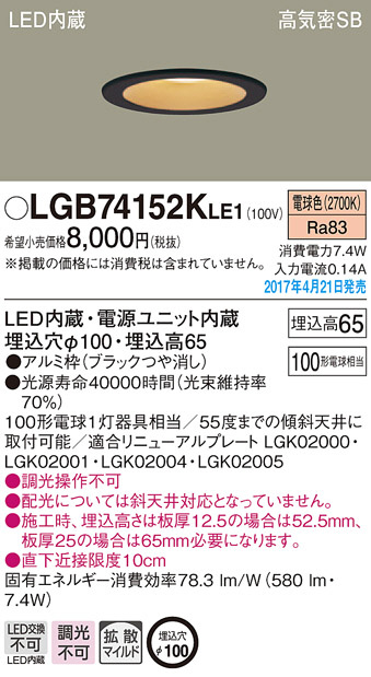Panasonic LED ¥À¥¦¥ó¥é¥¤¥È LGB74152KLE1