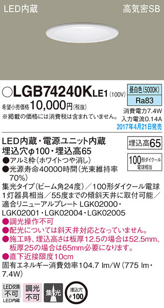 Panasonic LED ¥À¥¦¥ó¥é¥¤¥È LGB74240KLE1
