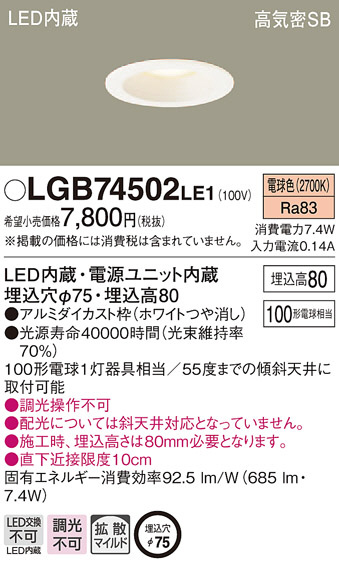 Panasonic ¥À¥¦¥ó¥é¥¤¥È LGB74502LE1