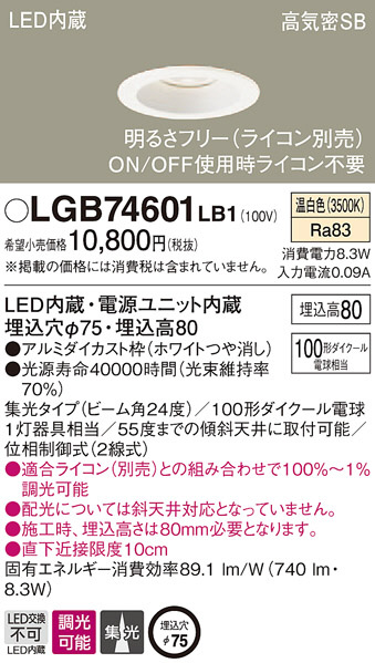 Panasonic ¥À¥¦¥ó¥é¥¤¥È LGB74601LB1