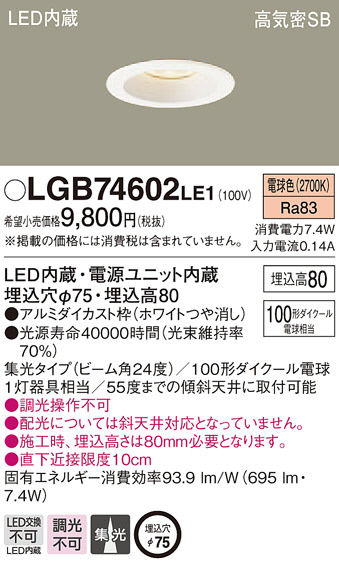 Panasonic ¥À¥¦¥ó¥é¥¤¥È LGB74602LE1