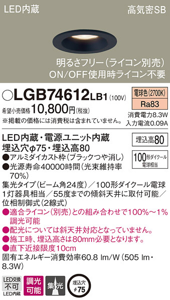 Panasonic ¥À¥¦¥ó¥é¥¤¥È LGB74612LB1