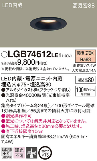 Panasonic ¥À¥¦¥ó¥é¥¤¥È LGB74612LE1