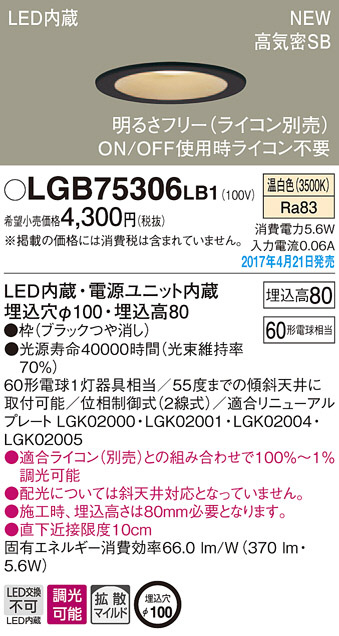 Panasonic LED ¥À¥¦¥ó¥é¥¤¥È LGB75306LB1
