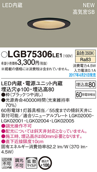 Panasonic LED ¥À¥¦¥ó¥é¥¤¥È LGB75306LE1