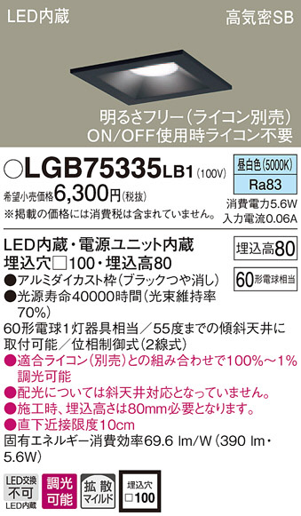 Panasonic ¥À¥¦¥ó¥é¥¤¥È LGB75335LB1