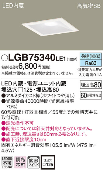 Panasonic ¥À¥¦¥ó¥é¥¤¥È LGB75340LE1
