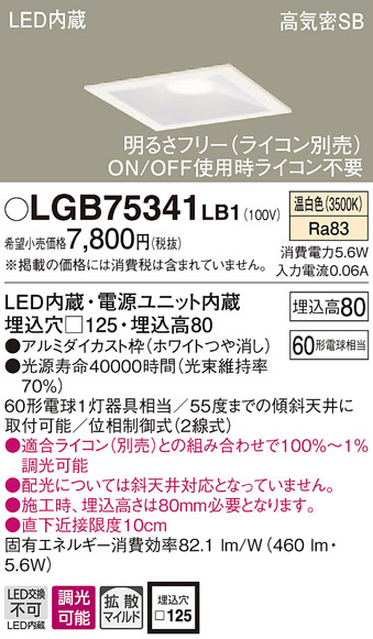 Panasonic ¥À¥¦¥ó¥é¥¤¥È LGB75341LB1