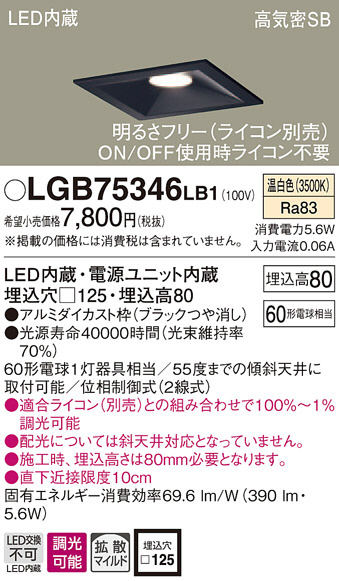 Panasonic ¥À¥¦¥ó¥é¥¤¥È LGB75346LB1