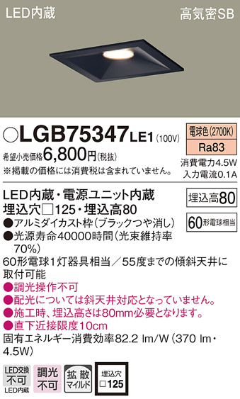 Panasonic ¥À¥¦¥ó¥é¥¤¥È LGB75347LE1