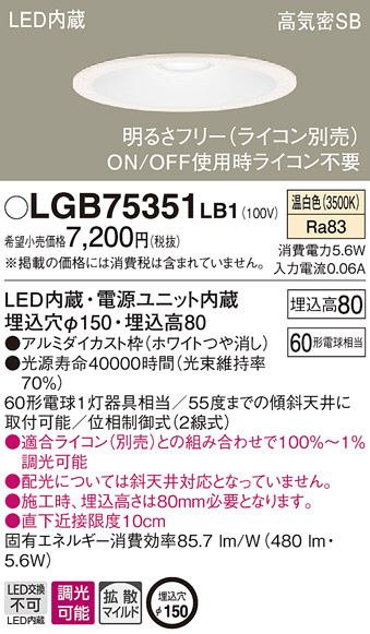 Panasonic ¥À¥¦¥ó¥é¥¤¥È LGB75351LB1