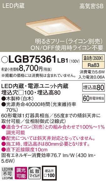 Panasonic ¥À¥¦¥ó¥é¥¤¥È LGB75361LB1