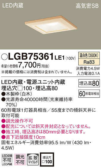 Panasonic ¥À¥¦¥ó¥é¥¤¥È LGB75361LE1