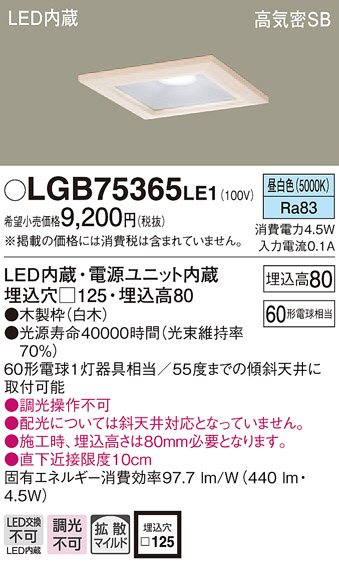 Panasonic ¥À¥¦¥ó¥é¥¤¥È LGB75365LE1