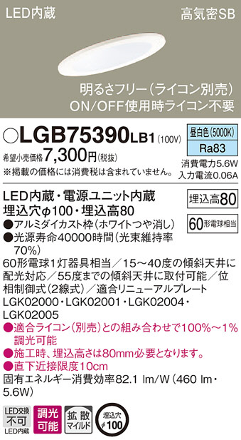 Panasonic ¥À¥¦¥ó¥é¥¤¥È LGB75390LB1