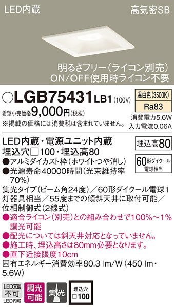 Panasonic ¥À¥¦¥ó¥é¥¤¥È LGB75431LB1