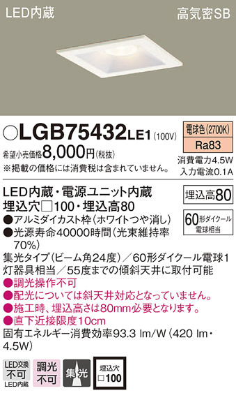 Panasonic ¥À¥¦¥ó¥é¥¤¥È LGB75432LE1
