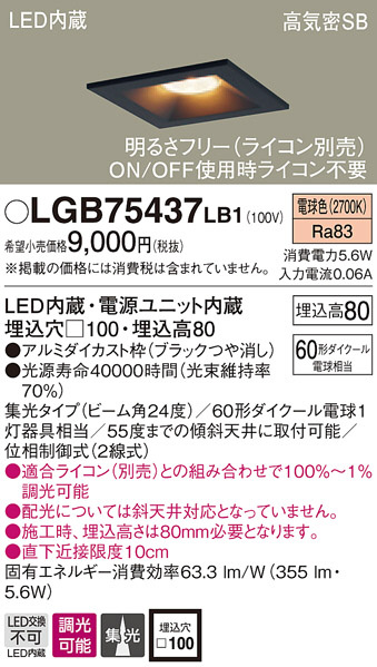 Panasonic ¥À¥¦¥ó¥é¥¤¥È LGB75437LB1