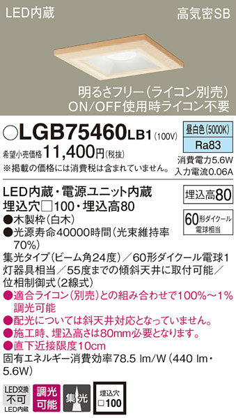 Panasonic ¥À¥¦¥ó¥é¥¤¥È LGB75460LB1
