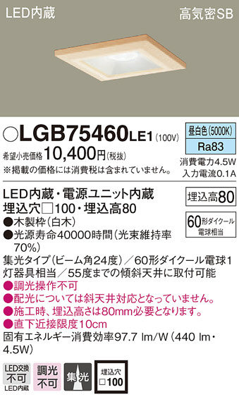 Panasonic ¥À¥¦¥ó¥é¥¤¥È LGB75460LE1