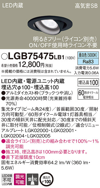 Panasonic ¥À¥¦¥ó¥é¥¤¥È LGB75475LB1
