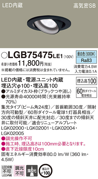 Panasonic ¥À¥¦¥ó¥é¥¤¥È LGB75475LE1